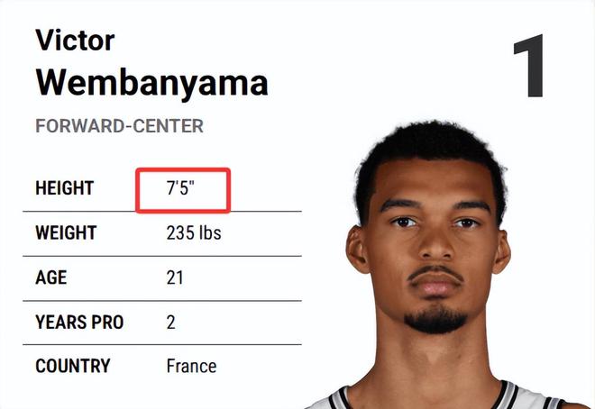 文班亚马要么是在24小时内“缩水”了2厘米——这从很多角度看都让人担忧;要么就是他的身高数据被反复修改,可能因为他不想被外界认为身高超过2米24。