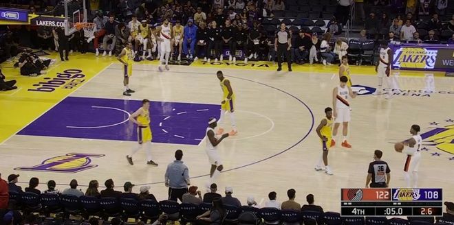 美媒:“湖人球迷看到布朗尼-詹姆斯登场时的反应。”